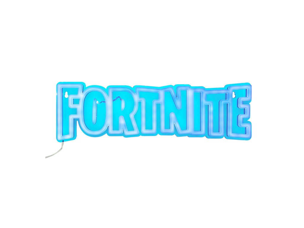 Neonové světlo v podobě loga populární počítačové hry Fortnite.