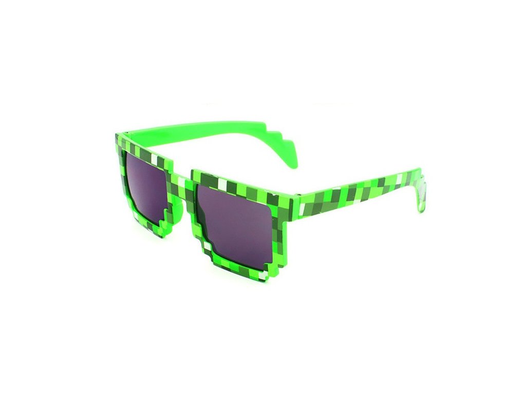 Kostkové sluneční brýle s UV ochranou v zelené barvě. Unikátní sluneční brýle, které vypadají, jakoby byly složeny z jednotlivých pixelů.