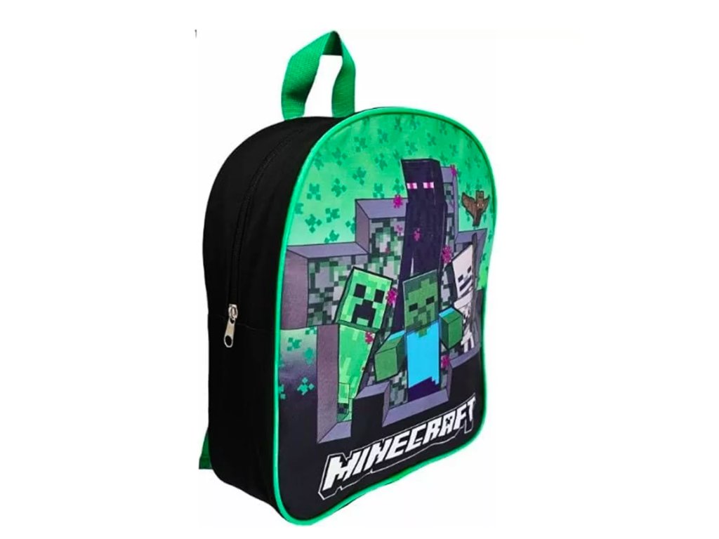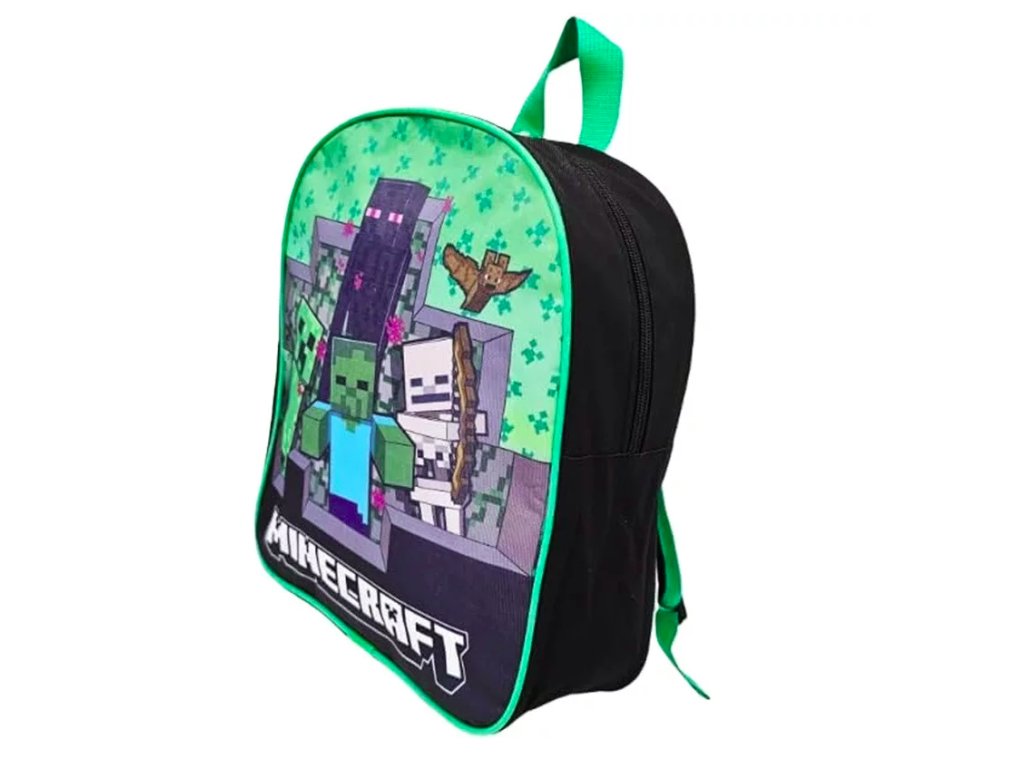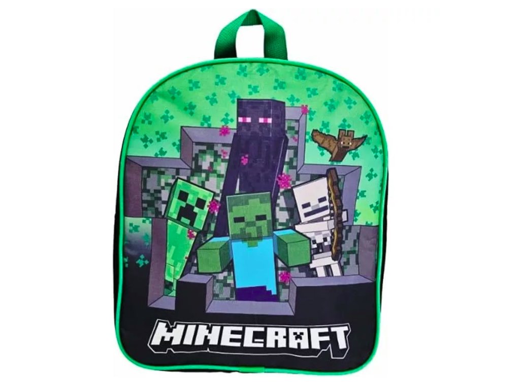 Praktický malý batoh s jednou hlavní přihrádkou a motivy z populární počítačové hry Minecraft.