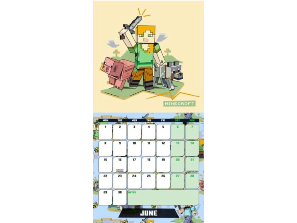 Oficiální nástěnný dvanáctiměsíční mini kalendář s fotkami ze hry Minecraft na rok 2026.