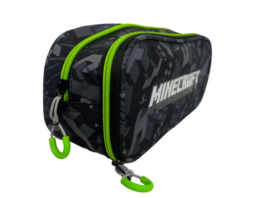 Praktický oválný dvoukomorový penál s motivy počítačové hry Minecraft a dostatkem prostoru pro všechny vaše školní potřeby.